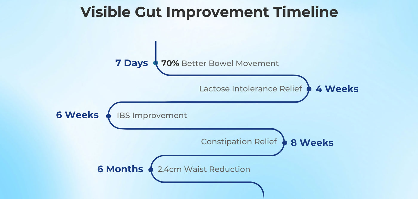 - 6 Weeks: Improves irritable bowel syndrome (IBS)