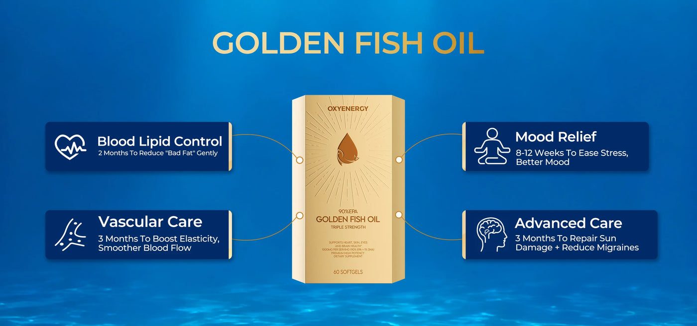 Golden Fish Oil is a high-quality formula that provides EPA and DHA to support heart, skin, eyes and brain health.*