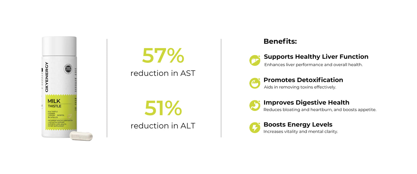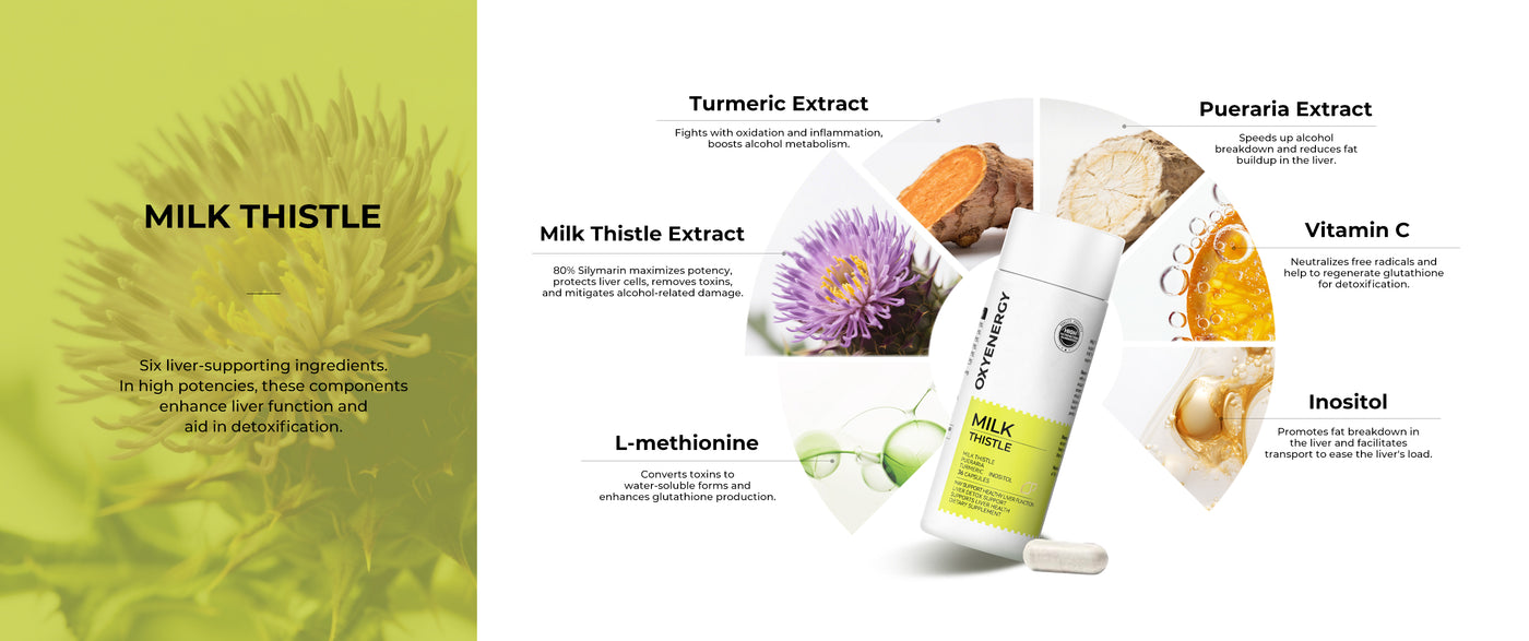 Use in OXYWe utilize 80% Silymarin to Maximized Potency, Protects your liver cells, clears out toxins, and eases the damage caused by alcohol or chemicals.