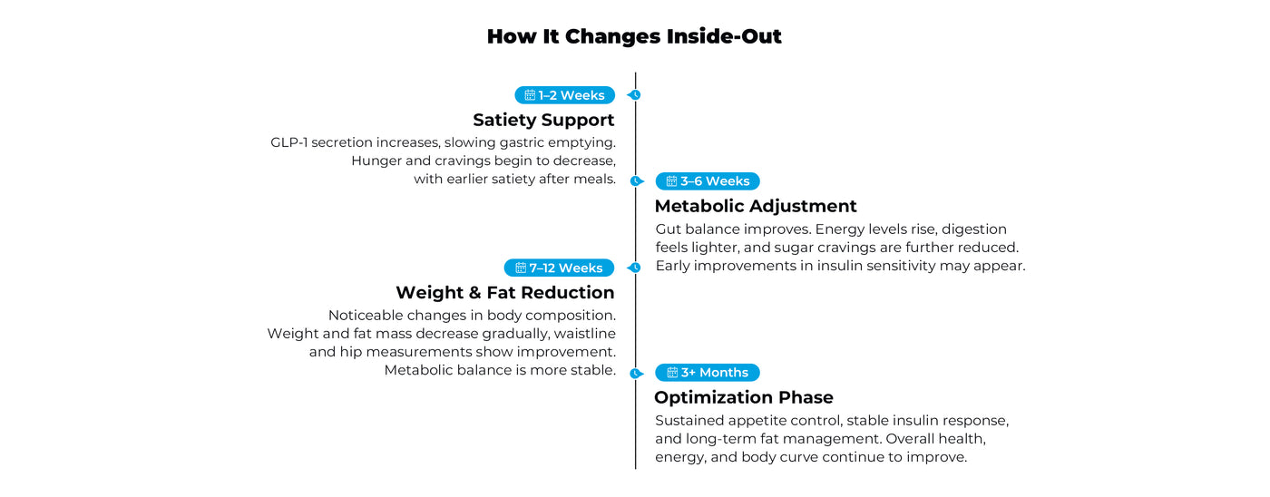 Supports AKK growth, enhances GLP-1, regulates metabolism, and increases satiety—all in one product. This dual-action supplement activates both the PPAR fat-burning engine and the AMPK metabolic engine simultaneously, promoting the development of brown fat and tackling stubborn body fat. -
